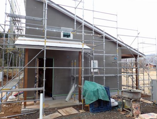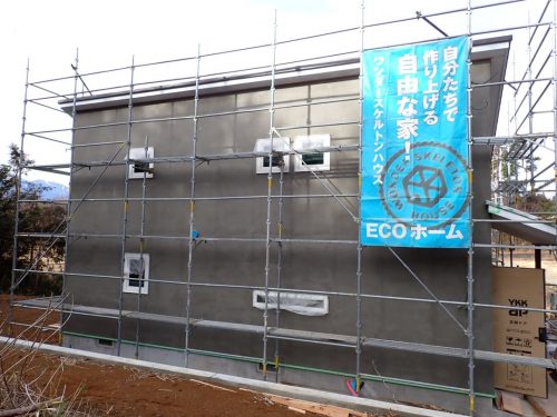 モルタル塗り完了~田園を借景する平屋ワンダースケルトンハウス@北杜市