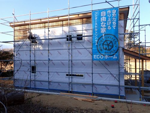 防水シートの施工~田園を借景する平屋ワンダースケルトンハウス@北杜市2026年1月16日