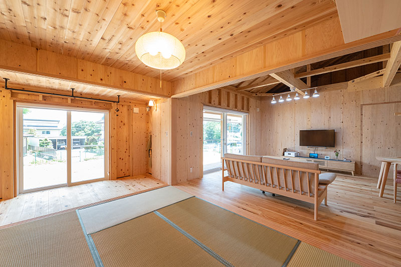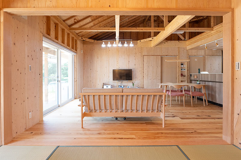 和室からリビングを撮影。木の香り漂う、明るく広々としたスペースです