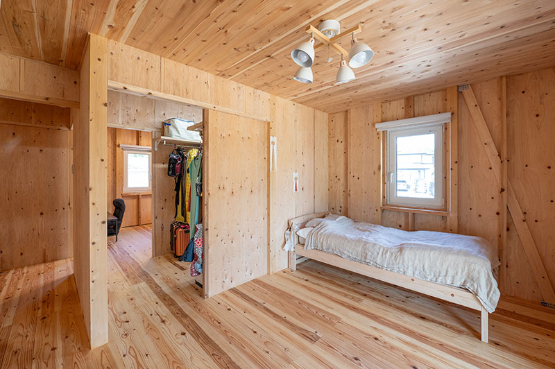 建物の東南に配置した明るいお部屋は、奥様の寝室。間にクローゼットを挟んで向こう側はご主人の寝室です