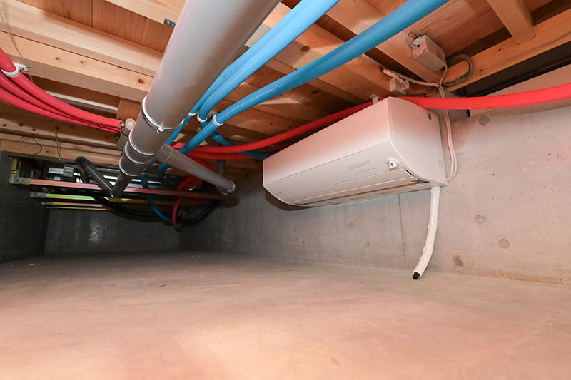 床下エアコン。これ一台で真冬でも家全体が暖まります